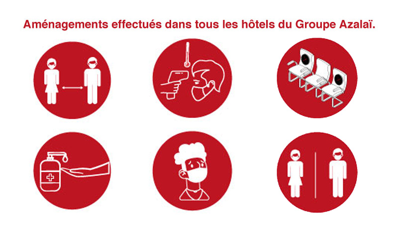 Nous tenons donc à vous remercier de la confiance sans faille que vous continuez d’accorder au Groupe AZALAÏ HOTELS. Soyez rassurez que pour continuer de mériter votre confiance, le Groupe a déjà mis en place un certain nombre de mesure visant à rendre votre séjour agréable et sûr.